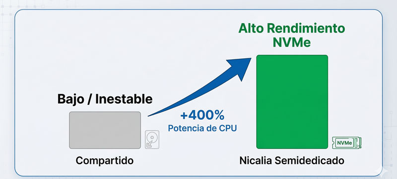 | Métrica de rendimiento | Hosting compartido | Nicalia Semidedicados | Mejora Real |