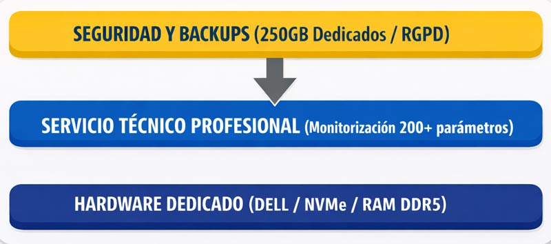Para un responsable de marketing o un CEO, la diferencia se resume en estabilidad. A continuación, desglosamos por qué el hardware dedicado bajo gestión experta está ganando la partida: