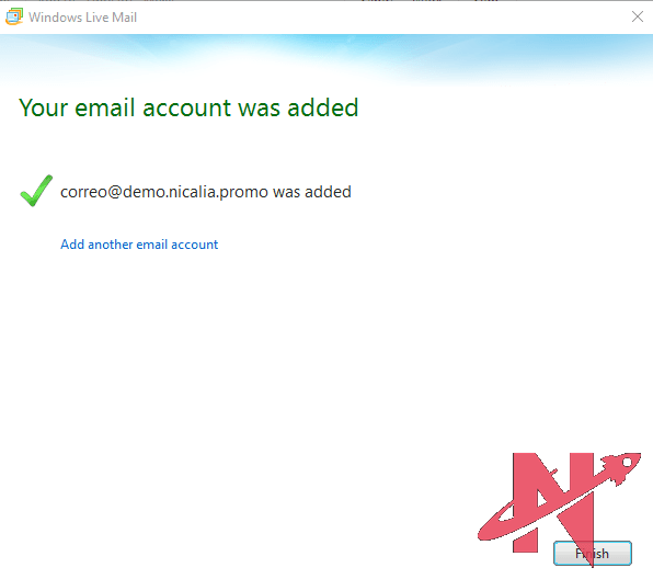 3. Nos mostrará la siguiente ventana indicando que la cuenta ha sido agregada.