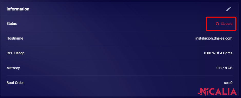 6. Confirma que el servidor está parado en la sección de “Información”.