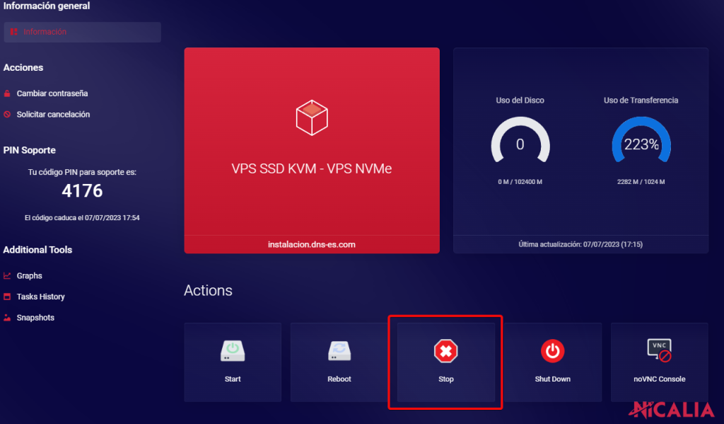 En caso de que quieras parar tu servidor VPS desde tu área de clientes tendrás que seguir los siguientes pasos :