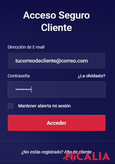 1. Accede a tu cuenta de cliente. Para ello, dirígete hacia nuestra web -> https://www.nicalia.com/