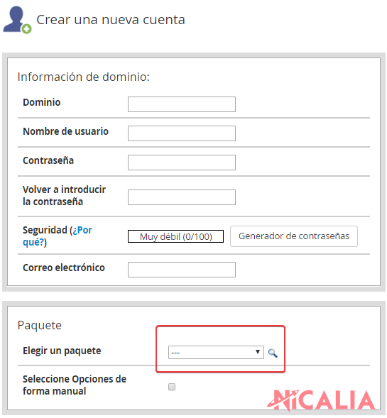 Crear un paquete en WHM