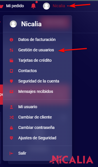 2. Haz clic en tu nombre situado en la esquina superior derecha y accede a “Gestión de usuarios”.