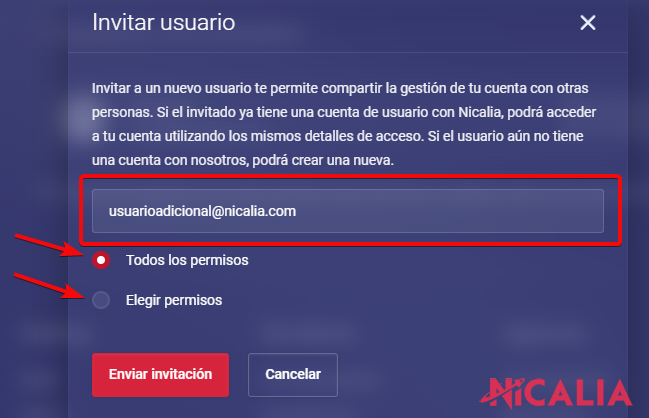 – Todos los permisos: El usuario invitado tendrá control total de la cuenta, como si de la cuenta principal se tratase.