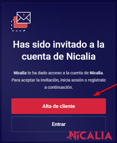 Si el usuario ya tiene una cuenta de cliente en Nicalia aparecerá esta imagen.