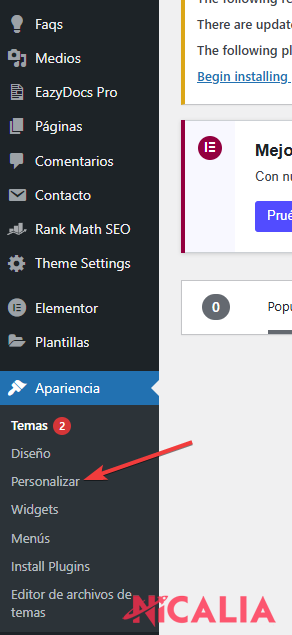 - En el menú lateral, ve a Apariencia > Personalizar.