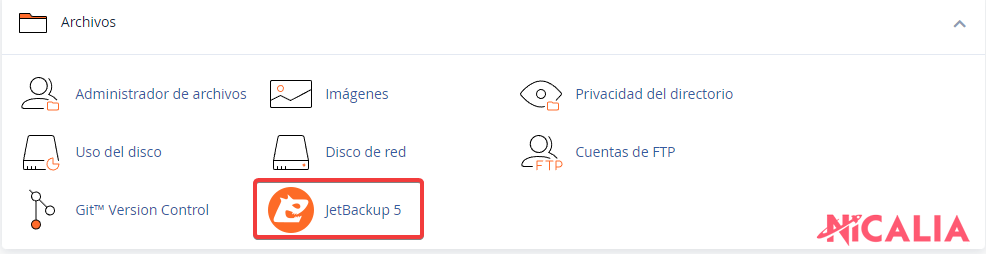 1. Dirígete hacia Jetbackup 5 ( cPanel >> Jetbackup 5 ).